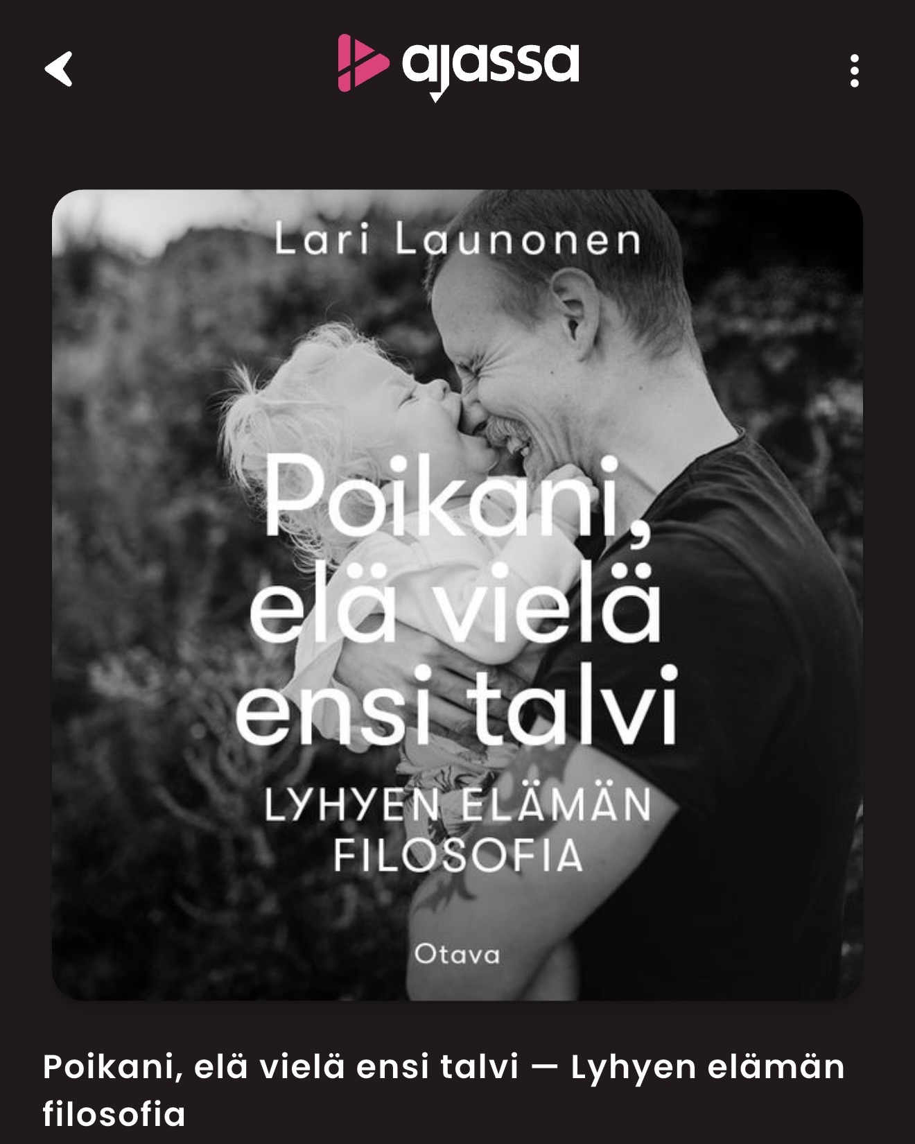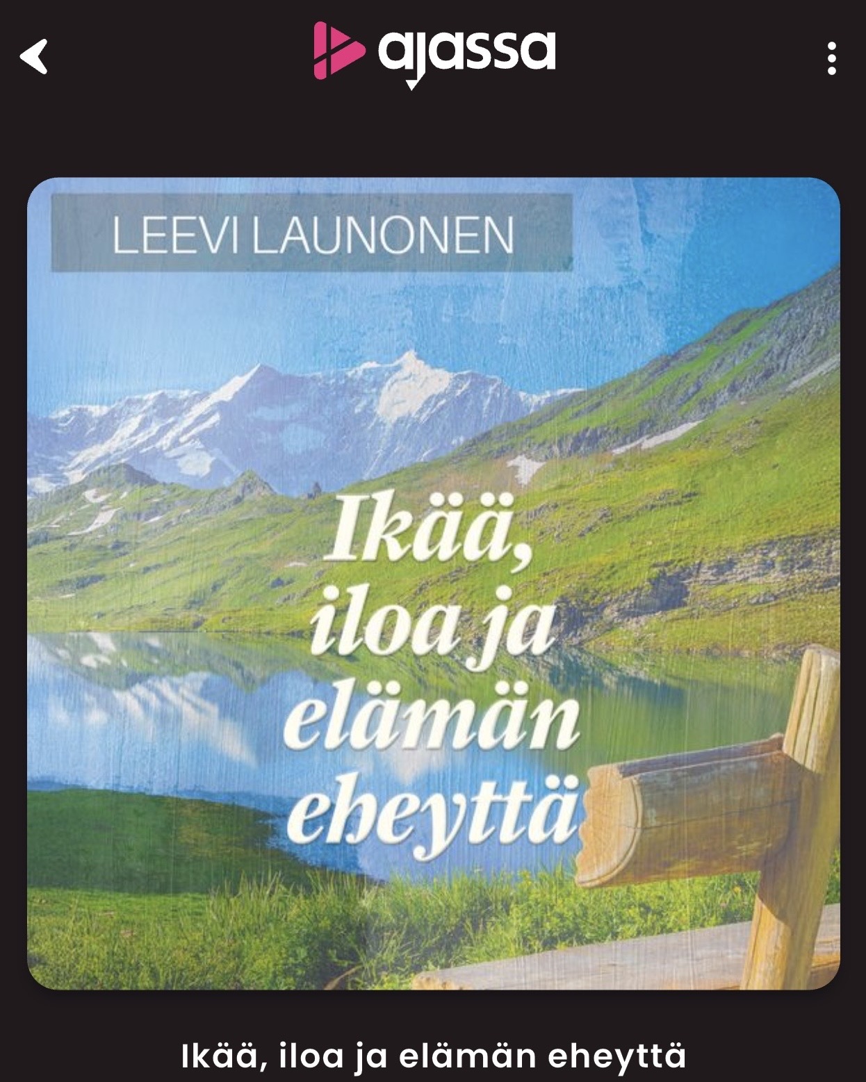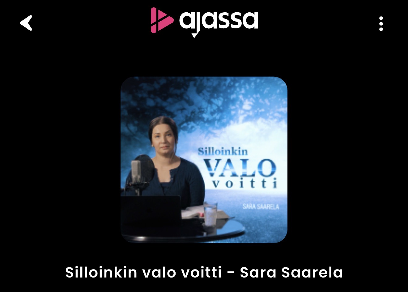 Ajassa-sovellus kokoaa sinulle kristillisen sisällön – äänikirjat, e-kirjat, podcastit, videot, musiikin ja lehdet. Missä ikinä oletkin, voit kuunnella, lukea ja katsella hengellisesti vahvistavaa ja rakentavaa sisältöä.